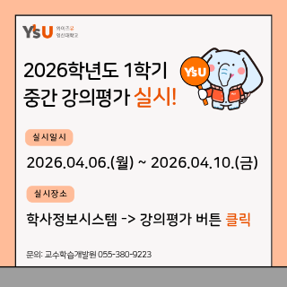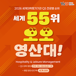 학교소개 지혜로운 가치를 배우는 대학, 지혜로운 당신을 만드는 대학 메인으로 이동 학교소개 학교소개 입학 대학/대학원 대학생활 커뮤니티 공익신고/청탁금지 및 행동강령 위반신고 열린총장실 건학이념과비전 연혁·상징 현황 캠퍼스안내 열린총장실 학교법인 법령상위원회 생명윤리위원회 영산법률문화재단 연설문 총장 인사말 이력보기 연설문 기고문·인터뷰 연구실적 동정 포토갤러리 업무추진비 사용명세 SNS 공유하기 페이스북 트위터 블로그 인쇄 홈으로 학교소개 학교소개 건학이념과비전 건학이념과 인재상 특성화전략 연혁·상징 연혁 상징 현황 기구표 학칙·규정 교류·협력 예결산·자료실 통계연보 행정감사결과공개 캠퍼스안내 캠퍼스맵 스쿨버스 오시는길 해운대캠퍼스 주차요금표 열린총장실 총장 인사말 이력보기 연설문 기고문·인터뷰 연구실적 동정 포토갤러리 업무추진비 사용명세 학교법인 이사장실 설립목적·건학정신 연혁 현황·조직도 임원 및 이사회 회의록 임원 친족관계 교직원 법령상위원회 대학평의원회 등록금심의위원회 기금운용심의회 생명윤리위원회 영산법률문화재단 재단 및 문화상 소개 출연자소개 연설문 학교소개 건학이념과비전 건학이념과 인재상 특성화전략 비전과 목표 특성화전략(이전) 연혁·상징 연혁 상징 UI 템플릿 교가·응원가 현황 기구표 학과소개 학칙·규정 학칙·규정 의견수렴 교류·협력 국제교류 산학협력 국내학술교류대학 자매고교 예결산·자료실 통계연보 행정감사결과공개 캠퍼스안내 캠퍼스맵 해운대캠퍼스 양산캠퍼스 스쿨버스 해운대캠퍼스 부산방면 울산방면 창원·장유·김해방면 해운대캠퍼스-양산캠퍼스순환 양산캠퍼스 부산방면 울산방면 창원김해양산방면 양산캠퍼스-서창순환 양산캠퍼스-해운대캠퍼스순환 오시는길 해운대캠퍼스 양산캠퍼스 해운대캠퍼스 주차요금표 열린총장실 총장 인사말 이력보기 연설문 기고문·인터뷰 연구실적 동정 포토갤러리 업무추진비 사용명세 학교법인 이사장실 인사말 이력보기 동정 언론보도 포토갤러리 설립목적·건학정신 연혁 현황·조직도 임원 및 이사회 회의록 임원 친족관계 교직원 법령상위원회 대학평의원회 목적 및 설립근거 평의원 현황 대학평의원회 규정 대학평의원회 회의록 등록금심의위원회 기금운용심의회 생명윤리위원회 IRB소개 IRB 심의 안내 자료실 공지사항 영산법률문화재단 재단 및 문화상 소개 출연자소개 입학 대학 대학원 International Application 한국어교육센터 평생교육원 원격평생교육원 평생교육원(양산캠퍼스) 평생교육원(해운대캠퍼스) 교육연수원 인사말 프로그램 법과인문학아카데미최고위과정 양산인문학과정 디지털 혁신·미래비전 최고위과정 대학/대학원 대학 학과소개 대학원 일반대학원 부동산대학원 사회과학대학원 한국문화대학원 관광·경영대학원 미용예술대학원 스포츠산업대학원 명예박사 수여자 대학생활 학사 수업 수강편람 수강신청·재수강·계절학기 개설교과목 · 강의시간표 조회 수강신청방법 수강신청 희망과목 담기 수강편람 교직과정 성적평가·조회·정정 강의평가 유고결석 스마트전자출결 강의계획서 조회 학사일정 등록금안내 등록금안내 등록금 납부 안내 등록금 분할 납부 안내 수업연한초과자(9학기 이상 등록자) 0원 납부자 등록 안내 학적 다전공·전과 휴학·복학 자퇴·제적·재입학 졸업·조기졸업·이수학점 졸업인증제 와이즈 핵심역량 인증제 학사 서식·자료실 증명서 발급 증명서 발급방법 증명서 종류 증명서 발급 대상자 국제학생증 발급 장학·학자금 장학 대학생 신입생 정부장학·학자금 국제교류 프로그램 안내 후기 취업·진로개발(YCMP) 학습지원 영어교육 자기주도학습·비전·리더십 독서·글쓰기 클리닉 도서관 공직시험 지원 로스쿨 진학 지원 학생활동.병무.편의 학생회.동아리.언론사 양산캠퍼스 해운대캠퍼스 병무.예비군 병무 예비군 편의.복지.기숙사 교내식당 주간메뉴 온라인 서비스 천원의 아침밥 시설사용안내·신청 풋살경기장 잔디운동장 창의설계실 신청하기 예약현황 학부모 참여 학부모 참여 소개 학교생활 안내 내 자녀 정보 학부모와 함께하는 교육 학년별 학습 및 대학생활 지도 학년별 진로지도 학부모 참여 프로그램 커뮤니티 공지사항 와이즈유 이야기 보도자료 뉴스&행사 언론속와이즈유 자랑스런 와이즈유 대학광고 입시홍보영상 이미지 생활정보·Q&A 학사 Q&A 영산사랑게시판 학사운영건의함 영산마켓 분실 · 습득물 분실물 습득물 숙박 카풀 대학발전기금 대학뉴스레터 기타 왜 와이즈유를 주목하는가 대학자체평가 행정정보공개 정보공개제도안내 정보공개접수처 및 관련서식 사전정보공개 정보목록 관계법령 개인정보처리방침 개인정보처리방침 개인정보처리방침 이전자료 개인정보제공내역공지 영상정보처리기기 운영 및 관리방침 영리목적의 광고성정보전송거부 부정청탁&금품수수 신고 및 문의 공지사항 서식자료실 권익위사례해설 관계법령 질의응답게시판 동영상자료실 위반사례신고 국민권익위원회 공무수행사인 현황 이메일무단수집거부 사이트맵 통합검색 홈페